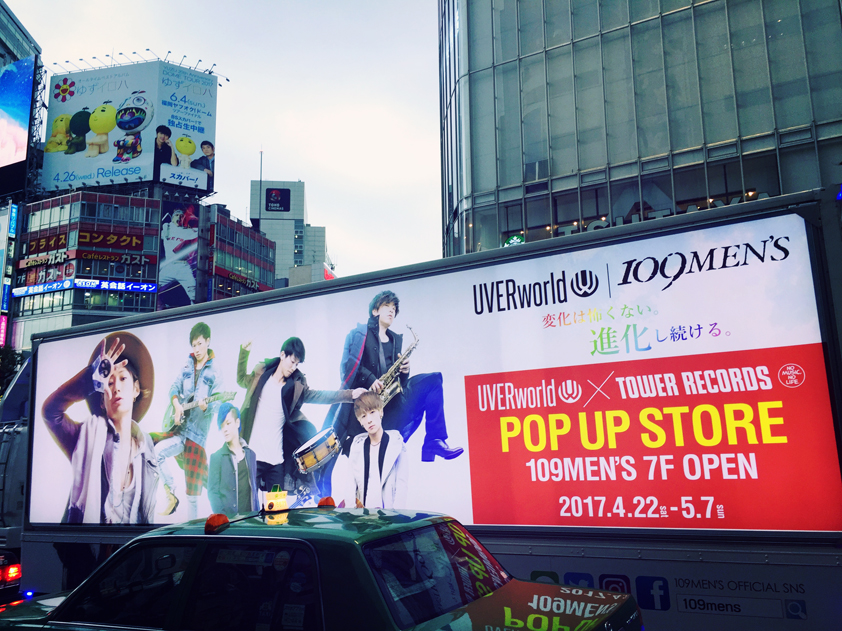 UVER01_4 2017年8月10日 842 × 631 【UVERworld | 109MEN’S】2017 Spring 制作事例 : OOH UVERworld | 109MEN’S 2017 SPRING 109MEN’S RE:NEWAL/後半アドトラック(昼)実施事例01