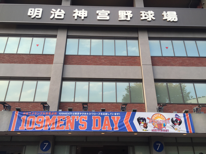 ys_109mensday_160720_01 2016年8月4日 842 × 631 制作事例 制作事例 : エントランスバナー/ 東京ヤクルトスワローズ×109MEN’S| 109MEN’S DAY @Jingu Stadium 2016 去る2016年7月20日に行われた「109MEN’S DAY」のエントランスバナーです。